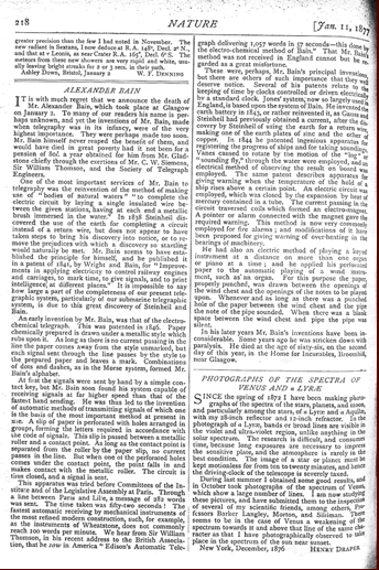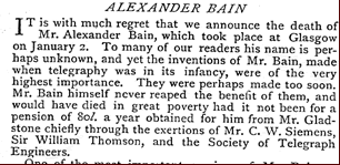 ベイン追悼文:An obituary “Alexander Bain" NATURE(Jan.11,1877)