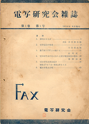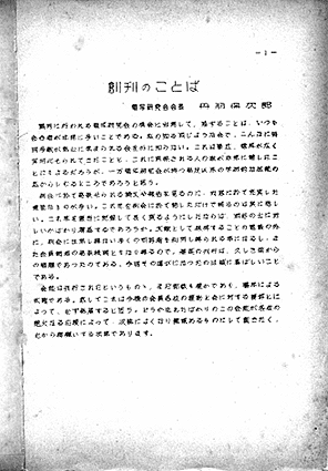 電写研究会雑誌 1巻1号表紙 および 1ページ、創刊のことば